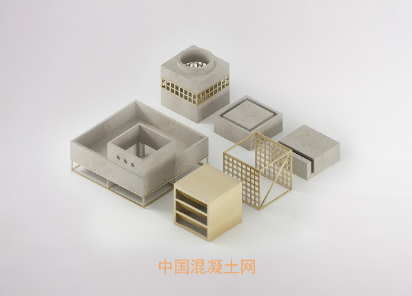3、這款植物容器的設計材料為混凝土,有一種小草破土而出的剛毅感覺,這個組合由許多個空心的混凝土立方體組成,這些立方體或是有圓孔開口,或是鑲嵌有木質格 子,還有些許黃銅,這些造型搭配看起來參差交錯,很有觀賞性,里面放入土壤種上植物,綠色的藤條就會從這些縫隙中伸出來,頗具詩意。