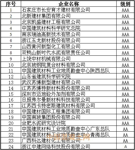 中國建材行業企業信用等級評價結果