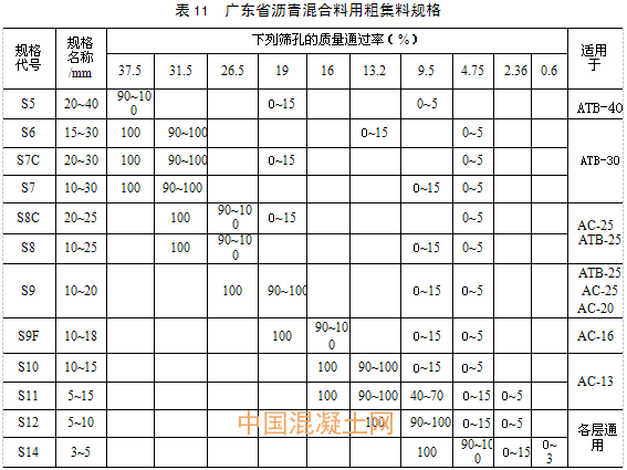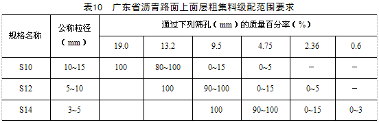 廣東省瀝青路面工程常用集料規格有S7C、S8C、S9、S9F、S10、S12、S14、和S16。