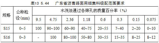 ③對S14即3~5規格的粗集料,針片狀顆粒含量可不予要求,<0.075mm含量可放寬到3%。