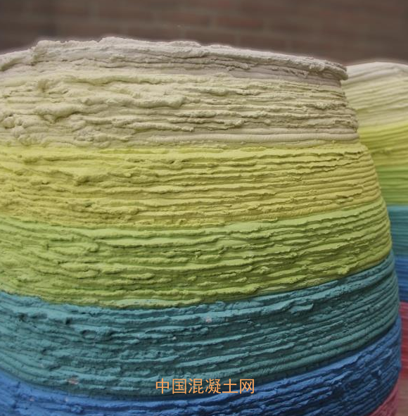 從那以后,他們顯然在完善自己的混凝土3D打印技術。如今,他們又在鹿特丹舉辦的MaterialXperienceandGevel2016(1月27—29日)上展示了3個高達1.6米的結構,這三個結構全部是用一種新的建筑3D打印技術實現的,而且都是彩色的。“當前的混凝土3D打印在很大程度上都與建筑的主體框架有關,比如在中國開發的那些項目。而我們要向建筑師證明,3D打印也可以用來改變建筑的空間語言。最終,我們甚至可以3D打印出具有很高美學價值的立面。”Bruil公司的市場與創新經理TheoVoogd在介紹這一新型混凝土3D打印技術時說。