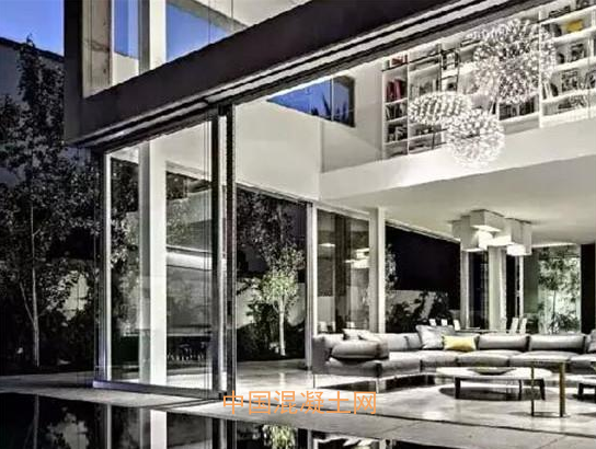巨大的混凝土和玻璃板,創(chuàng)造出有著流動線條的半透明墻。