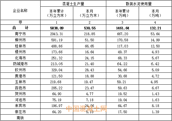 2015年1-12月,廣西全區(qū)累計(jì)預(yù)拌混凝土產(chǎn)量5038.09萬方。