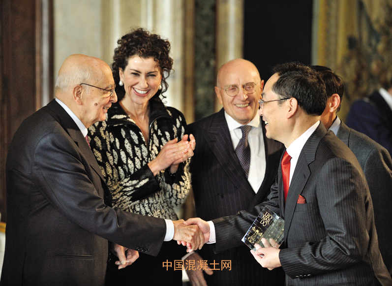 意大利總統納波利塔諾為中聯重科詹純新頒發“萊昂納多國際獎”,這是中國企業家首次獲該國際獎項。