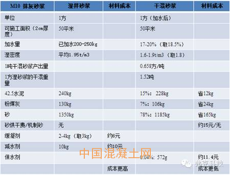 相比干混砂漿,同樣施工面積,濕拌砂漿主材和添加劑消耗更多,配方成本更高。