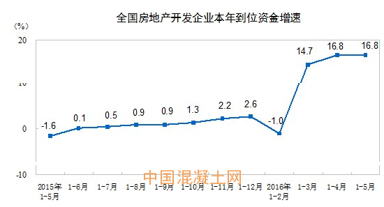 1-5月份,房地產開發企業到位資金53681億元,同比增長16.8%,增速與1-4月份持平。其中,國內貸款8945億元,增長2.3%;利用外資42億元,下降72.1%;自籌資金18643億元,增長1.4%;其他資金26051億元,增長39.4%。在其他資金中,定金及預收款14840億元,增長35.2%;個人按揭貸款8838億元,增長58.5%。