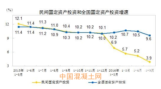 國家統(tǒng)計(jì)局13日發(fā)布的數(shù)據(jù)顯示,1-5月份,民間固定資產(chǎn)投資116384億元,同比名義增長3.9%,增速比1-4月份回落1.3個(gè)百分點(diǎn)。