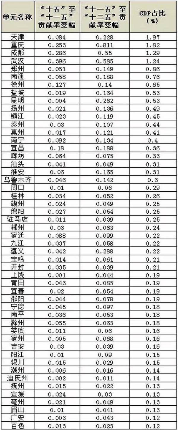 表1:不同時(shí)期各地級(jí)及以上行政單元經(jīng)濟(jì)增量對(duì)全國(guó)貢獻(xiàn)率的變化