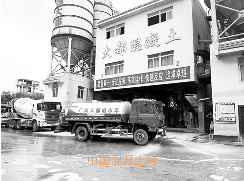 混凝土攪拌站出入口安裝了噴淋系統(tǒng)