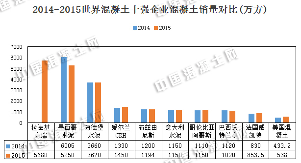 根據(jù)中國混凝土網(wǎng)的統(tǒng)計數(shù)據(jù),2015年世界混凝土十強(qiáng)排名如下: