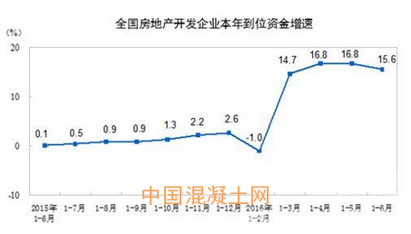 1-6月份,房地產開發企業到位資金68135億元,同比增長15.6%,增速比1-5月份回落1.2個百分點。其中,國內貸款10939億元,增長1.0%;利用外資66億元,下降63.2%;自籌資金23816億元,下降0.1%;其他資金33314億元,增長38.3%。在其他資金中,定金及預收款18934億元,增長34.1%;個人按揭貸款11245億元,增長57.0%。
