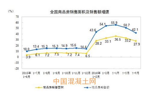 1-6月份,商品房銷售面積64302萬平方米,同比增長27.9%,增速比1-5月份回落5.3個百分點。其中,住宅銷售面積增長28.6%,辦公樓銷售面積增長40.5%,商業營業用房銷售面積增長13.4%。商品房銷售額48682億元,增長42.1%,增速回落8.6個百分點。其中,住宅銷售額增長44.4%,辦公樓銷售額增長61.6%,商業營業用房銷售額增長15.6%。