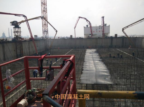 為了保證正式施工能夠順利進(jìn)行,江蘇中鐵奧萊特從施工現(xiàn)場(chǎng)取樣,進(jìn)行了多次試驗(yàn),提供了此次承臺(tái)澆筑施工的專用外加劑。該外加劑以ART-M2系列保坍劑為主,同時(shí)復(fù)配多種緩凝組分及ART-VE系列粘度調(diào)節(jié)劑。實(shí)驗(yàn)室試拌混凝土顯示,能夠保持流動(dòng)性長(zhǎng)達(dá)9小時(shí),凝結(jié)時(shí)間超過(guò)50小時(shí)。此外,在奧萊特技術(shù)人員的建議下,施工現(xiàn)場(chǎng)從原材料就進(jìn)行嚴(yán)格控制,通過(guò)提前灑水降溫并加入冰塊,使攪拌過(guò)程中水溫控制在10℃以下,同時(shí)在混凝土泵管周圍包裹冷卻水管,保證混凝土入模溫度在30℃以下。