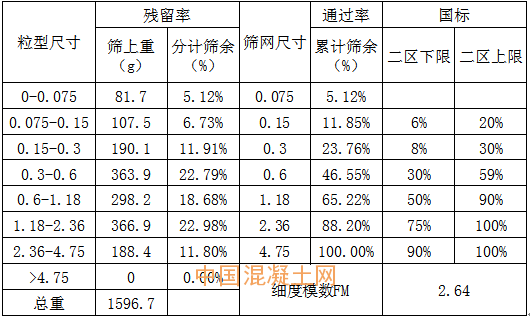 V7制砂生產(chǎn)線成品砂級配數(shù)據(jù):
