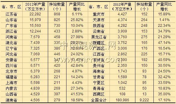 編者按: 2011年至2012年連續兩年的宏觀經濟運行態勢表明,我國經濟因需求不足,而進入改革開放以來的第二個調整型增長期。2012年5月,我國經濟開始實施穩增長刺激政策的人為“上拉效應”。據國家統計局公布的2012年固定資產投資(不含農戶)364835億元,同比增長20.6%;全國房地產開發企業房屋施工面積57.34億平方米,比上年增長13.2%; 由于國家宏觀調控力度加大,固定資產投資、房地產及基建投資增速均有所減緩,我國經濟維穩運行。近幾年,鐵路建設幾近飽和,資金到位成難題,但國家多次增調鐵路建設投資規模,總體規模仍在擴大。據鐵道部發布的最新統計數據顯示,2012年鐵路固定資產投資達到6309.80億元,比2011年增加412.48億元,比上年同期增長7%。由此可見,混凝土行業在宏觀經濟的拉扯下仍保持上升態勢。 據中國混凝土網不完全統計,2012年中國商品混凝土產量達18.1億立方米,同比增長了17.10%,相比去年增幅有所減少。其中西北和西南地區的增長幅度最大,分別增長31.57%和31.55%;東北和中南地區分別增長19.25%和18.43%;華北地區增長17.76%;華東地區增長幅度最小,為10.96%,相比去年減少2.04%,由此看來,華東地區混凝土市場發展速度較快,高速城市化建設推動混凝土商品化率在不斷增長,市場需求趨于飽和;該地區將不再是全國混凝土行業發展的增長點,取而代之的是西北地區,近幾年西北混凝土市場的快速發展,混凝土產量趕超我國其他地區,成績尤為出色。 從企業數量上來看,2012年華東地區混凝土企業數量達3130家,中南地區2059家,華北地區1656家,西南地區888家,東北地區853家,西北地區636家,由此華東地區相比其他區域企業數量較大,而東北、西北地區混凝土企業較少,可見東北、西北地區競爭壓力較小,砼網預測未來幾年該區域有可能成為我國混凝土行業的急劇增長區域。 從各省混凝土產量來看,2012年江蘇省商品混凝產量依然居全國首位,達2.23億立方米,同比增長6.11%,相比去年有所減少;山東位居第二,產量1.6億立方米,同比增長25.82%,與去年相比增長幅度較大;廣東位居第三,增幅也較去年有所提高,達10.04%,根據廣東省預拌混凝土行業協會公布數據1.556億立方米,按照該省的混凝土企業數據與泵車數據推算,實際上廣東省混凝土產量遠高于混凝土協會公布數據,中國混凝土網推測該省預拌混凝土產量大約在1.6-1.7億立方米左右;浙江、河南躍居前五;這五個省市的混凝土產量總和占到全國混凝土總量的41%。預計2013年我國商品混凝土產量還將保持理性增長,多個區域正在加快行業產業的規劃步伐,提高行業監管力度,未來幾年,我國商品混凝土市場將朝著健康有序的方向發展。 由于每年混凝土實際數據與預測數據存在偏差,本網對2011年預拌混凝土各省市產量以及全國總量進行了調整,2011年我國預拌混凝土總產量由原來的14.2億立方米調整為15.46億立方米。 以下是2012年我國各省市(不含港澳臺地區)商品混凝土產量統計,其中數據均來源于當地協會、媒體,以及依據2012年散裝水泥增長率推算所得,僅供參考。