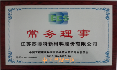 10月26日,中國工程建設標準化協會建筑防水專業委員會換屆年會暨工程建設新型防水防護學術技術交流會在成都隆重召開,江蘇蘇博特公司應邀出席,會上公司被評為專委會第五屆常務理事。會上還表彰了先進單位及先進個人,公司榮獲2012-2016年度先進單位稱號,會議推選劉加平為第五屆“中國工程建設標準化協會防水防護專業委員會”副主任委員,推選孫德文為專家委員。