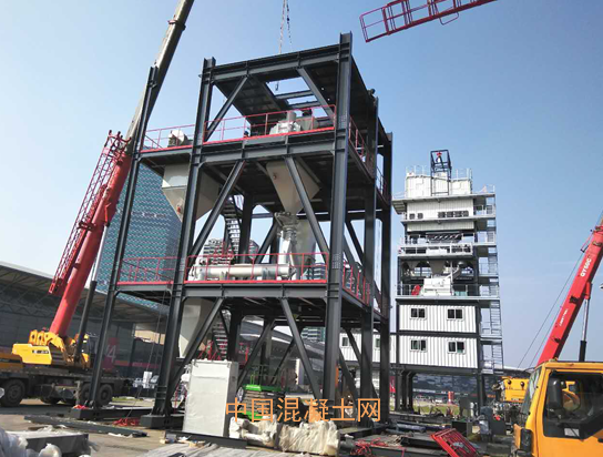 今天是上海寶馬展南方路機展品進場安裝的第五天。天氣晴朗,陽光明媚,安裝團隊干勁十足,安裝工作進展比預期中快,瀝青攪拌設備原生部分主樓安裝完成,緊接著進入熱再生部分吊裝,干混砂漿攪拌設備也安裝至攪拌層。