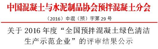 2016年度“全國預拌混凝土綠色清潔生產示范企業”評審結果公示