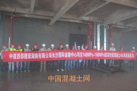 11月16日, 在長沙國際金融中心項(xiàng)目現(xiàn)場,中建西部建設(shè)湖南公司進(jìn)行了140-160MPa超高性能混凝土泵送試驗(yàn),成功將該型號(hào)混凝土泵送至452米高度,一舉刷新了國內(nèi)超高性能混凝土泵送高度記錄,同時(shí)該項(xiàng)技術(shù)達(dá)到了國際先進(jìn)水平。