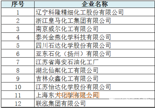 多家環氧企業入圍石化行業百強,浙江嘉化能源化工股份有限公司、中國三江化工有限公司、遼寧奧克化學股份有限公司、佳化化學股份有限公司、德納國際企業有限公司、江蘇華倫化工有限公司。