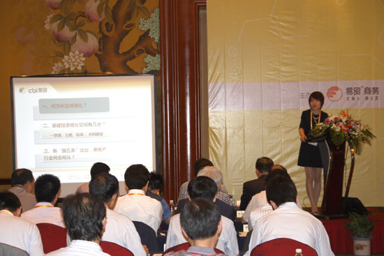 上午9點,大會正式開始。在致辭之后,由上海易貿(mào)研究中心宏觀經(jīng)濟助理研究員潘航女士率先發(fā)言。她以最近炙手可熱的話題——城鎮(zhèn)化為主題,從宏觀的角度分析了未來我國基建投資的增長趨勢。她從鐵路、公路、機場、水利四個方面詳細的闡述了我國基礎建設與國外發(fā)達國家的差距,并表示2013年很可能成為基建投資真正落實的爆發(fā)期。最后,還針對“國五條”實施細則,對房地產(chǎn)行業(yè)的前景進行了總結(jié),并表示中長期的剛性需求將會推動房地產(chǎn)市場,未來仍具有向上動能。