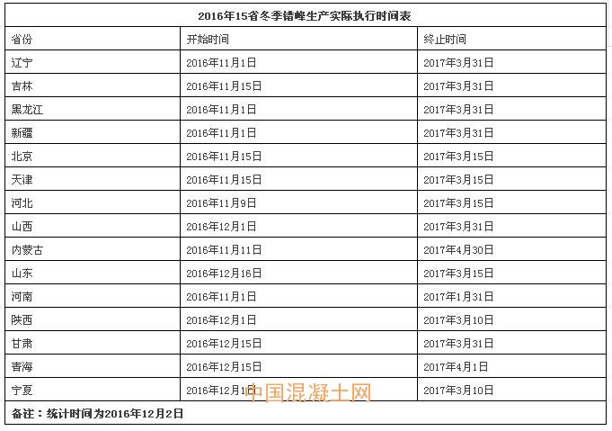 各地各企業(yè)對錯峰生產的重視達到了前所未有的程度,所涉及省市自治區(qū)馬上行動,很快根據各自情況,因地制宜出臺實施文件,拿出了操作性極強的措施,有的地區(qū)甚至細化到點明哪一家企業(yè)的哪一條生產線應該關停。與此同時,各地的文件都部署了詳細的保障執(zhí)法措施和督查追責辦法。到目前為止,已經落實2016年15省冬季錯峰生產實際執(zhí)行時間表: