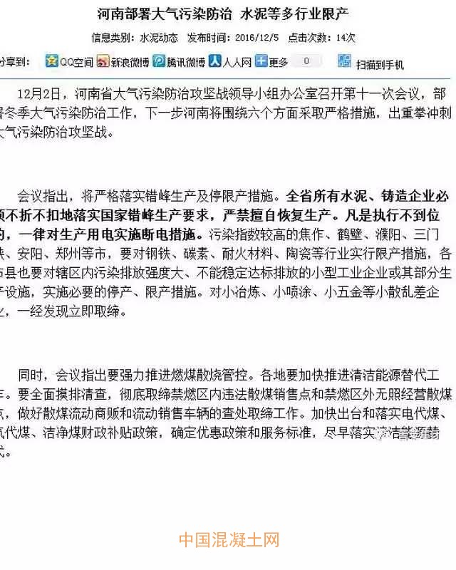 霧霾來(lái)襲,混凝土行業(yè)各省市限產(chǎn)停產(chǎn)