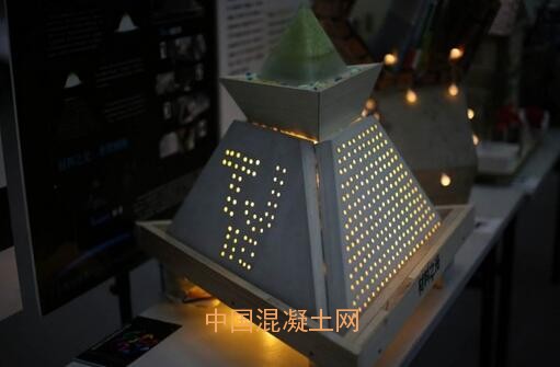 作品“材料之光”以材料四要素的四面體形象,通過透光混凝土和或隱或現的燈光,告別顏色晦暗、毫無生氣的混凝土,展現混凝土靈動的另一面。