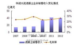 2012年全國水泥行業利潤總額較2011年下降了32.81%,但是中國建材營業收入仍然達到了872億元,較2011年增長了8.9%,這很大程度上需得益于其混凝土業務。
