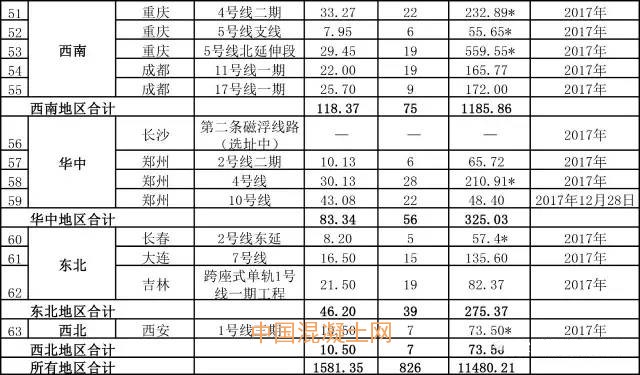華中地區有長沙、鄭州2座城市,共新增4條新開工線路,合計里程為83.34公里,車站56座,投資額為325.03億元;