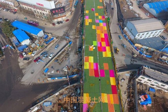 1月6日,在濟南七里山路附近順河高架橋南施工現場一副絢麗的畫面引人駐足,在建的高架橋上,施工工人鋪上上百床彩色棉被,目測長度有上2000多平米。據悉,這段高架橋正在建設中,恰逢寒冬氣溫太低,為了確保冬季低溫下混凝土干透,施工方想到用這種辦法來給大橋“保暖”。