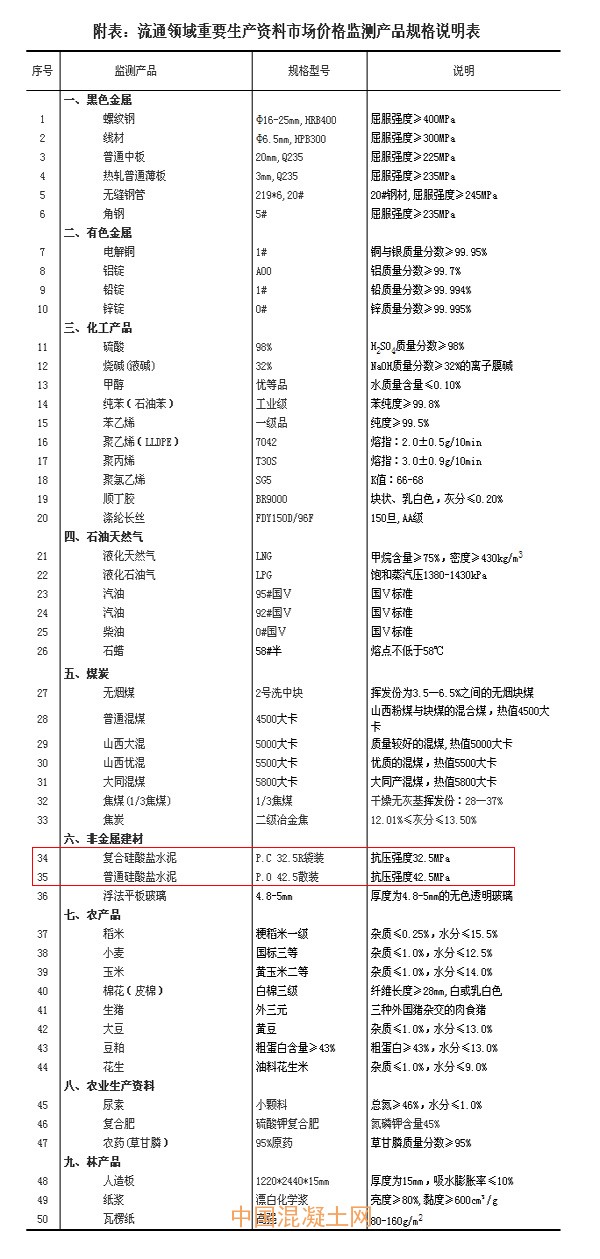 流通領(lǐng)域重要生產(chǎn)資料市場價(jià)格監(jiān)測內(nèi)容包括9大類50種產(chǎn)品的價(jià)格。類別與產(chǎn)品規(guī)格說明詳見附表。