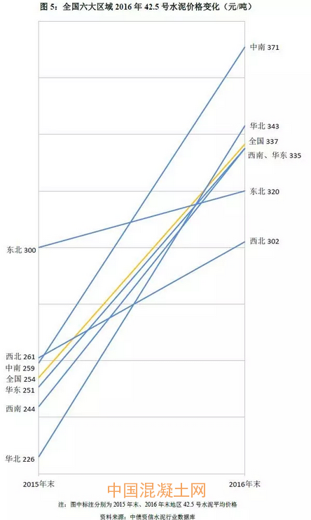 由于基數較低,得益于京津冀地區需求回暖、金隅冀東整合帶來競爭秩序改善等因素,全年42.5號水泥價格漲幅117元,居全國首位,價格水平亦從2015年末全國末尾攀升至第二位;東北地區往年在黑龍江、吉林良好競爭秩序支撐下價格處全國高位,但2016年在需求低迷背景下價格漲幅較小,截至2016年末價格已處倒數第二位。