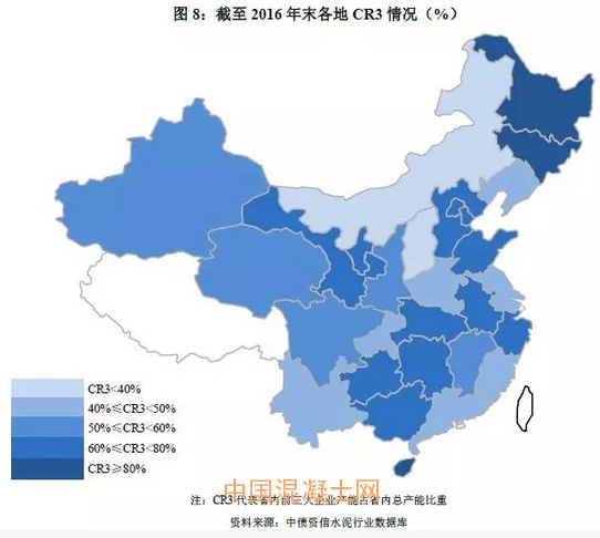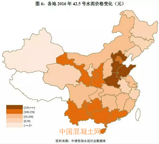 分區域看,兩湖、長三角等地區較好的競爭秩序和主導企業間相對成熟的競爭策略利于區域價格維持合理水平;東北地區黑吉兩省集中度雖較高,但脫離需求基礎的協同效果已逐漸趨弱,正如上文所提,2016年東北地區水泥價格漲幅全國墊底;山西和內蒙是全國水泥區域產能集中度最低的兩個省份,區域內尚未形成具有明顯優勢的龍頭企業,低迷的需求疊加較差的競爭秩序對未來區域價格走勢形成制約。