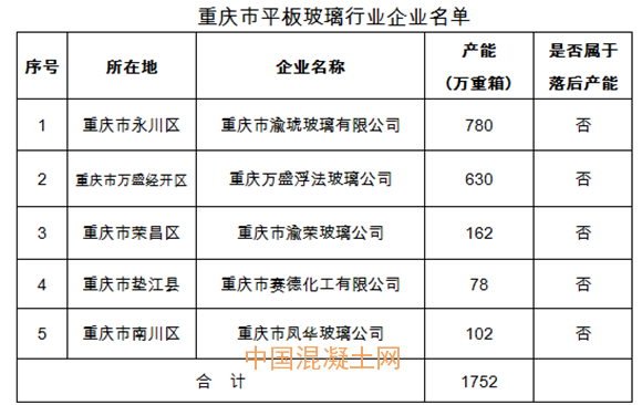 關(guān)于重慶市水泥、平板玻璃行業(yè)企業(yè)名單的公示