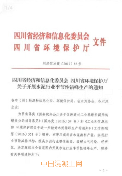日前,四川省經信委和四川省環保廳聯合發布《關于開展水泥行業積極性錯峰生產的通知》(川經信冶建〔2017〕85號)(以下簡稱“通知”)。《通知》要求,四川全省所有水泥熟料生產線均實行錯峰生產,利用電石渣生產水泥熟料和生產特種水泥的生產線可以適當減少錯峰生產天數。協同處置城市生活垃圾、污泥及危險廢物的水泥窯生產線原則上可以不參加錯峰生產,但要適當降低生產負荷。