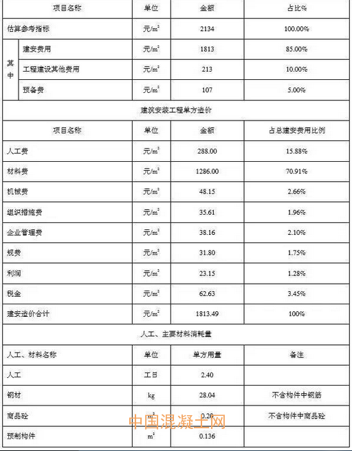征求意見稿中最受關注的莫過于對8類PC率不同的裝配式混凝土住宅及裝配式鋼結構住宅工程的投資估算分別給出了參考指標,這使得裝配式建筑的“成本賬”有了一個清晰、統一的標準和依據。