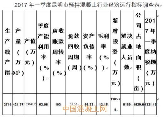 根據《昆明市人民政府辦公廳關于進一步加強昆明市預拌混凝土行業監督管理的通知》要求,昆明市散裝水泥辦公室制定下發《2017年一季度昆明市預拌混凝土企業經濟運行指標調查表》并進行收集及數據整理工作,市散裝水泥辦對主城區主要預拌混凝土企業共65家進行了通知,下發了調查表,截止交表時間,完成數據上報53家。