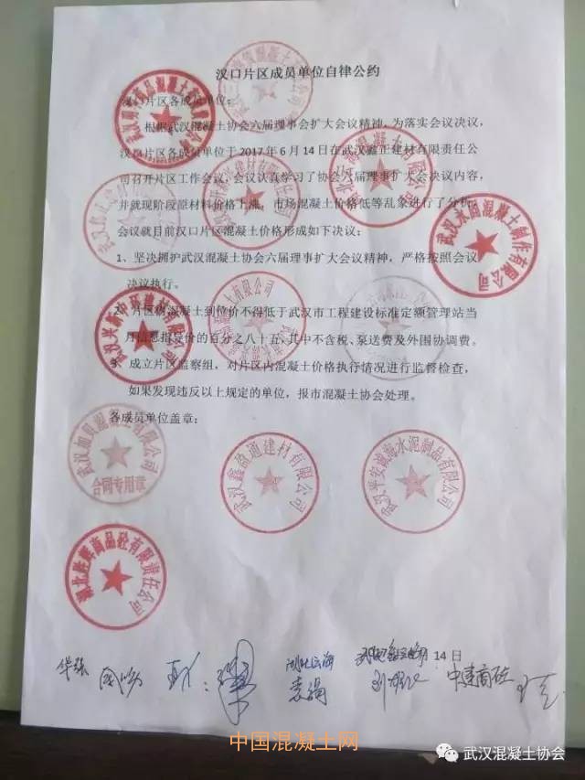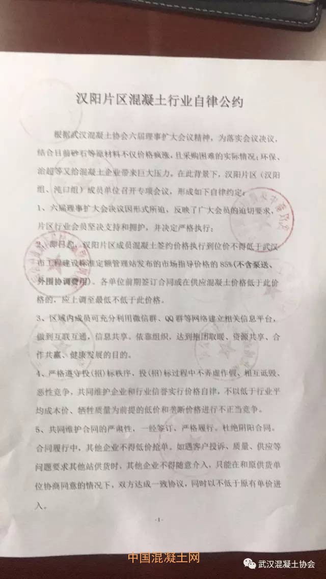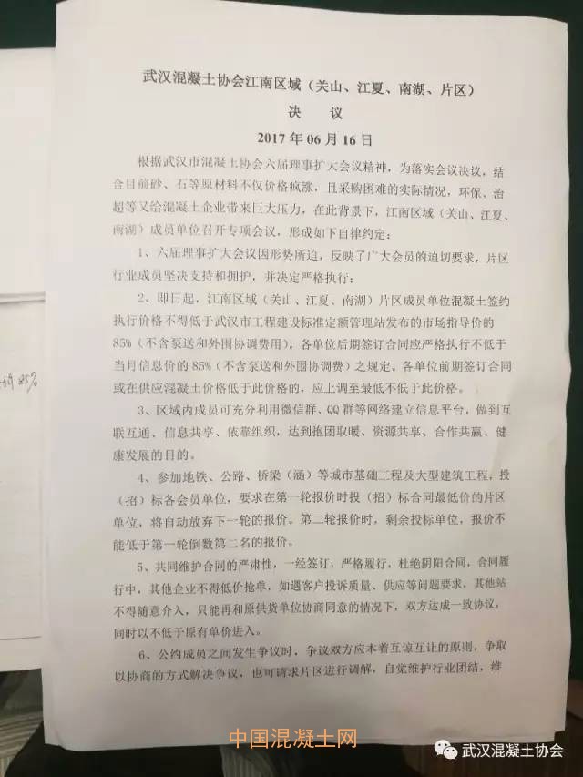 今年以來,武漢市及周邊地區部分砂石基地因環保問題陸續停產和整改,各攪拌站開始出現砂石緊缺情況。近期長江即將進入汛期,采砂愈加困難,導致砂石等原材料貨源更加緊張,且價格高漲,對商混企業成本和生產帶來巨大影響。6月13日,武漢混凝土協會召開六屆理事擴大會,會上,武漢各片區自發組織制定行業自律公約,各片區混凝土企業最終執行簽約價格不得低于武漢市工程建設標準定額管理站發布的市場指導價的85%。