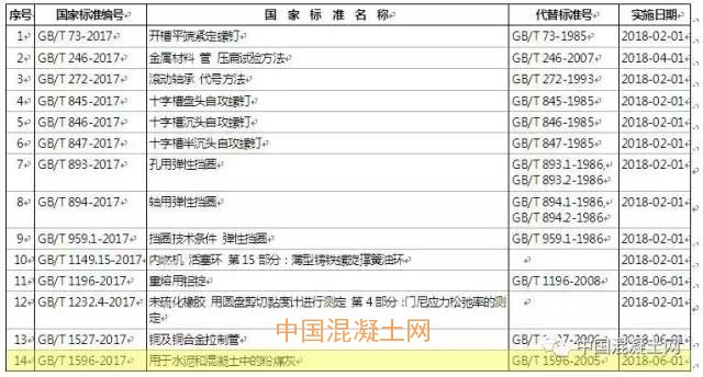 GB/T 1596-2017《用于水泥和混凝土中的粉煤灰》和GB/T 34008-2017《防輻射混凝土》將于2018年6月1日起實(shí)施。