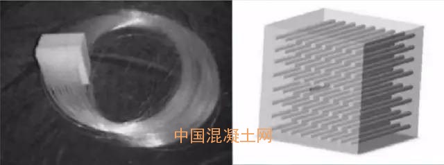 ”先植法“:將文字、圖形等繪制半硬質的塊體上,如EPS或者XPS等發泡聚苯乙烯塊體,按圖形打孔,穿入已準備的光纖棒,將帶著光纖棒的塊體放入成型模內,再澆注免振搗的水泥凈漿或水泥細砂漿。待其硬化具有一定強度后,再經鋸切露出光纖棒的光點形成的圖形,就成為導光的裝飾水泥混凝土。
