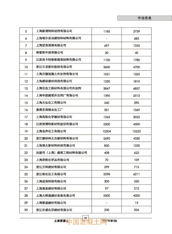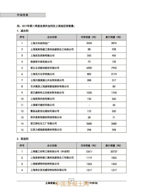 2017年上半年度上海市混凝土外加劑市場(chǎng)狀況