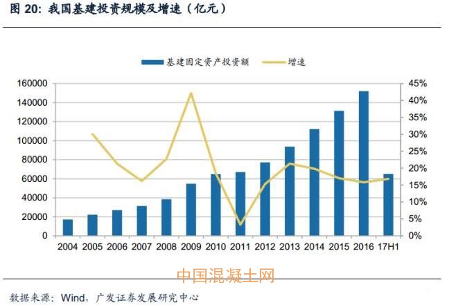 2)需求側向上:需求端主要由基建和地產投資構成,2014年后基建和地產投資增速降到了10%以內的區間。2017年上半年增速再次回到了10%以上,結合當前的城鎮化率水平,對中長期的行業需求,我們持謹慎樂觀的態度,基本維持在5-10%之間的區域波動,形成穩態的需求。