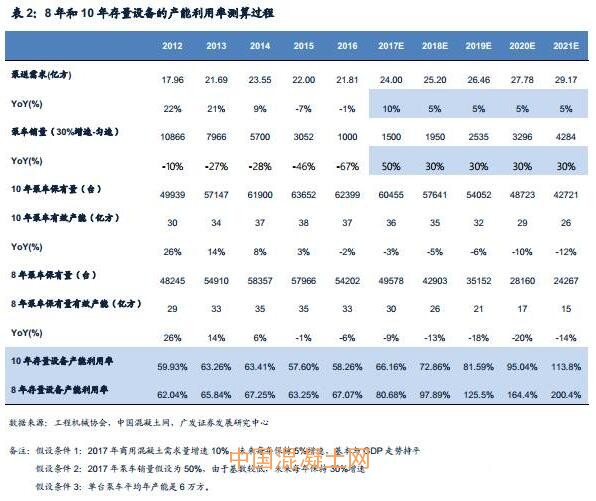 由于泵車的保有年限差異對產能供給形成擾動,我們分別測算了8年和10年保有量情形下的供需形勢,結論如下: