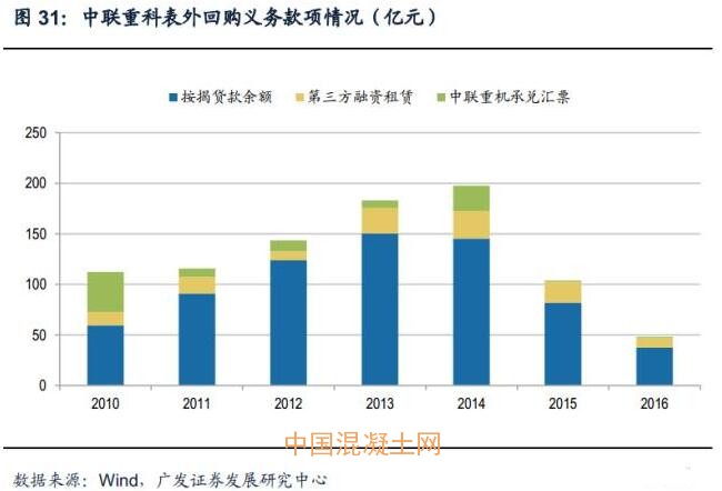 主機廠在資產負債表端也背負著較大的壓力,主要是長期信用擴張形成的應收賬款和表外或有負債。以行業兩家主要的工程機械企業為例,三一重工的表外或有負債水平從2012年以后持續下滑,中聯重科從2014年以后也逐步下滑,到2016年底,存量的或有擔?;刭徚x務款僅相當于高點時候的20-30%,風險敞口得以大幅度縮窄,逾期的應收賬款也清理得比較徹底。