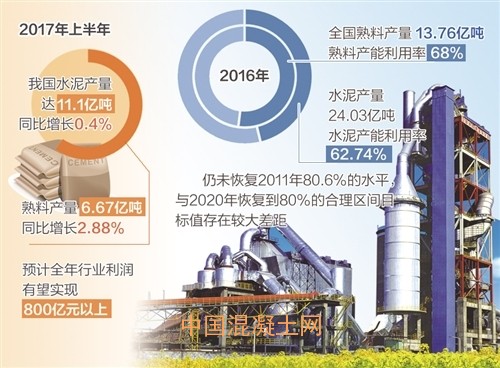 據國家統計局統計,2017年上半年,我國水泥產量達11.1億噸,同比增長0.4%,與去年同期基本持平;熟料產量6.67億噸,同比增長2.88%。“當前,水泥產能過剩已嚴重阻礙了行業可持續發展,隨著未來市場需求的下降,留給行業結構調整的‘窗口期’有限,去產能工作將成為行業‘十三五’的攻堅戰。”中國水泥協會常務副會長孔祥忠表示,目前水泥行業去產能工作的重點是去熟料產能,遏制新增產能、淘汰落后產能、停止生產32.5強度等級水泥必須齊頭并進。