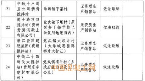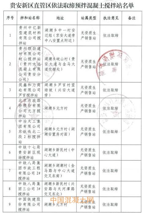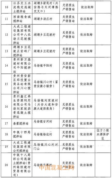 附:貴安新區直管區依法取締預拌混凝土攪拌站名單