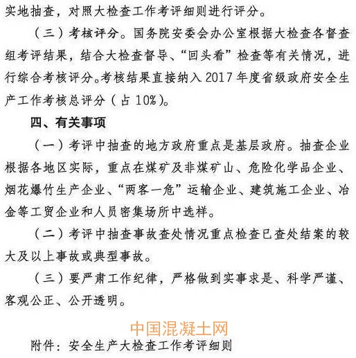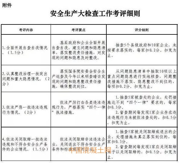 (四)各督查組要把安全生產(chǎn)大檢查工作考評納入綜合督查統(tǒng)籌安排,按照《安全生產(chǎn)大檢查工作考核方案》(附件2見下圖或下載附件),從被督查地區(qū)中選擇部分基層政府和企業(yè)開展抽查檢查進行考評。