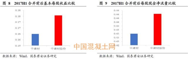 合并后,根據(jù)2016年數(shù)據(jù),中建材股份收入將突破1500億元,凈利潤(rùn)突破16億元,總資產(chǎn)達(dá)4432億元,實(shí)現(xiàn)強(qiáng)強(qiáng)聯(lián)合,優(yōu)勢(shì)互補(bǔ)。中建材股份將是全球水泥產(chǎn)能第一,并在商混、水泥工程服務(wù)、石膏板、玻纖制造等領(lǐng)域處于世界領(lǐng)先地位。