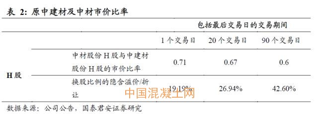 我們看到中材股份與中建材換股比例1:0.85,對(duì)于中材股份H股股東而言,1個(gè)交易日角度看,隱含了19%的溢價(jià)。我們認(rèn)為,溢價(jià)原因體現(xiàn)在: